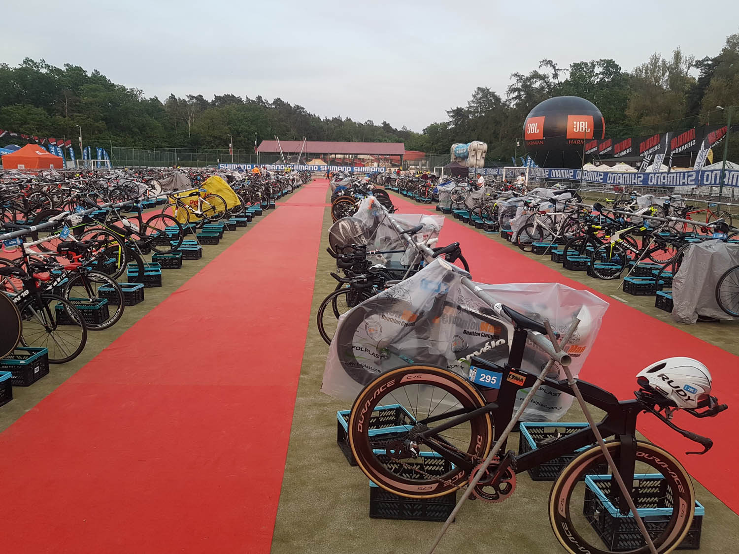 W piątek, dzień przed startem wstawiam rower do strefy zmian, która jest imponująca. Setki rowerów, dookoła czuć atmosferę przedstartową, jest tak jak być powinno. Wieczorem duża porcja makaronu i do namiotu 😃. O dziwo spało się rewelacyjnie 👍. W sobotę z samego rana jeszcze szybko sprawdzenie roweru w strefie, uzupełnienie bidonów 🥤🥤, ustawienie butów do biegania, analiza, którędy wbiec by odnaleźć szybko swój rower po pływaniu i już.. w głowie wszystko poukładane 😃.